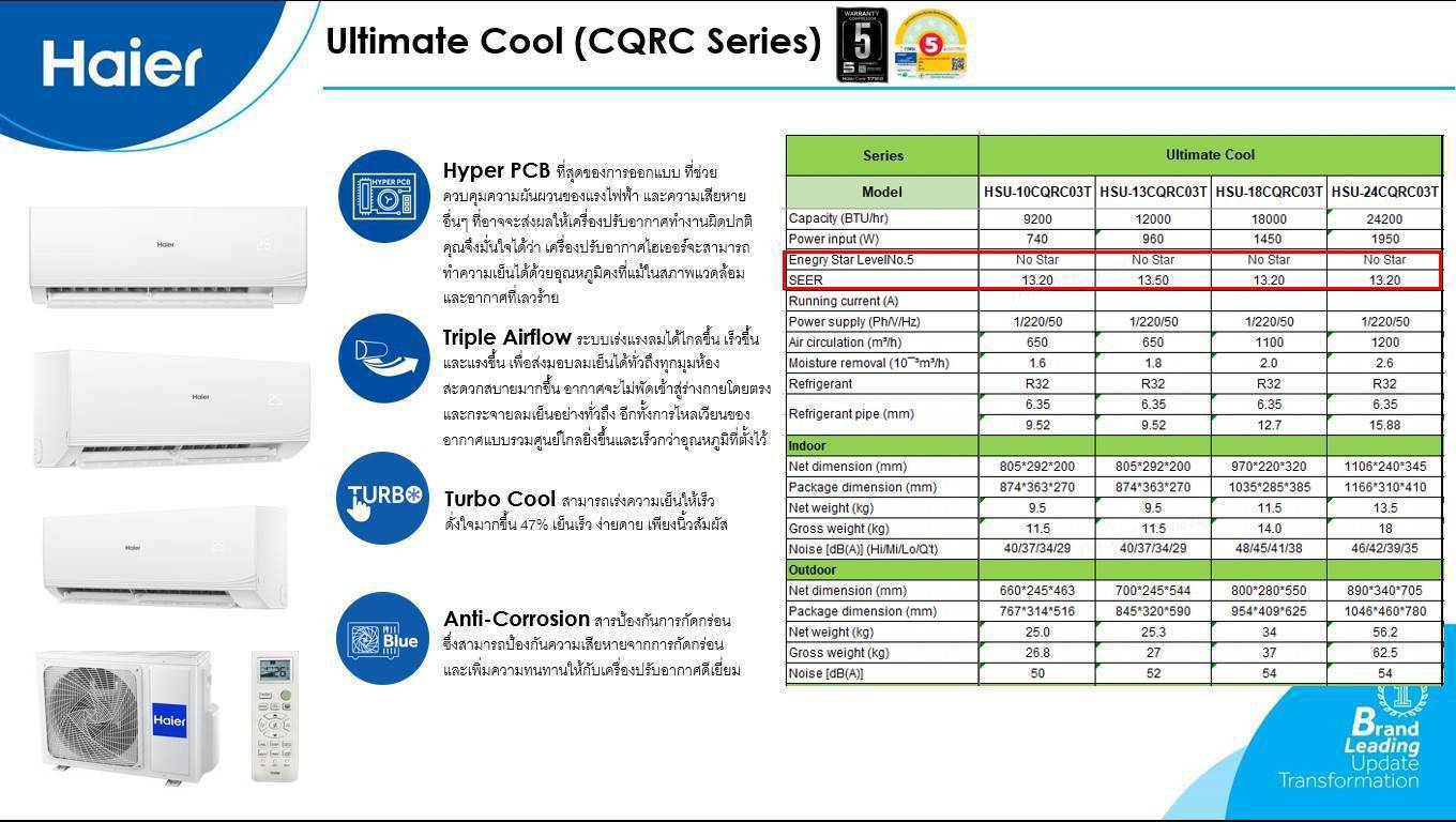 Haier CQA Ultimate Cool Serier (R32) เย็นสบายทุกองศา ด้วยนวัตกรรมความเย็น รายละเอียดสินค้า